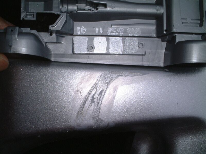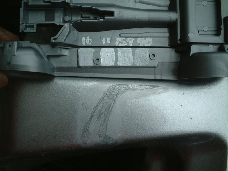 クリアのスプレーをした後。傷が消えてかなり目立たなくなっている |